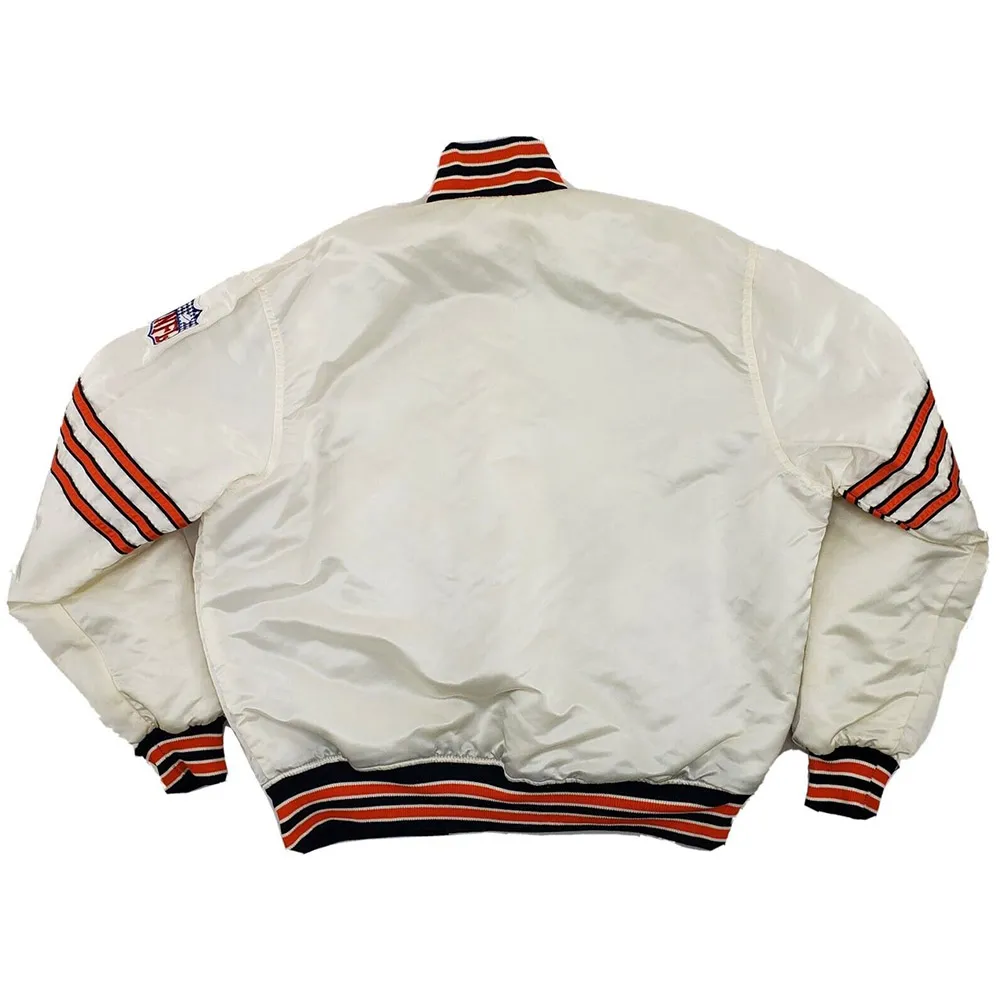 Step into vintage game-day style with the ’90s Full Snap Chicago Bears Jacket. Made from sleek satin in a classic navy blue and white color combo, this jacket captures the old-school NFL vibe fans love. The glossy finish and retro details make it a standout piece, whether you’re tailgating or adding to your streetwear collection.