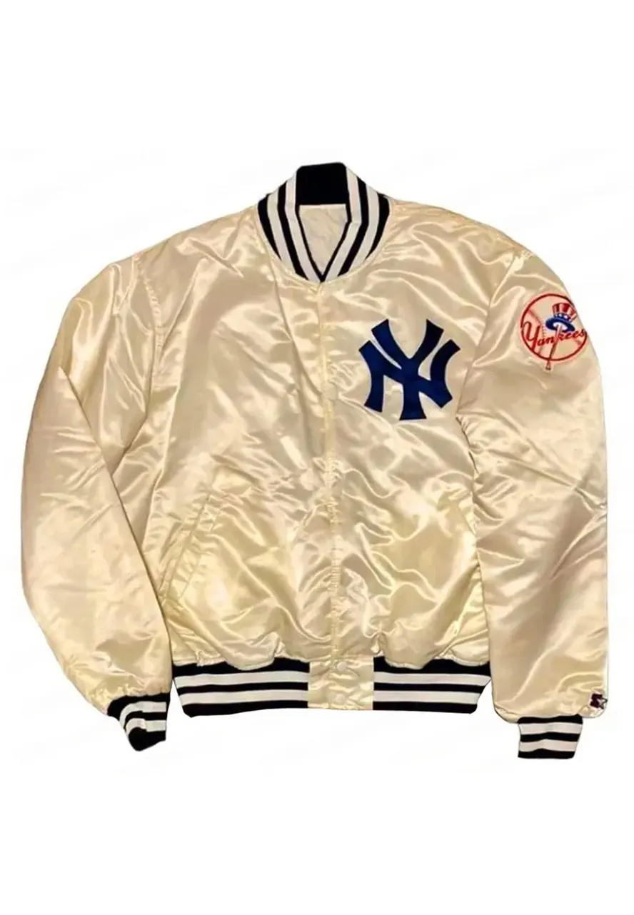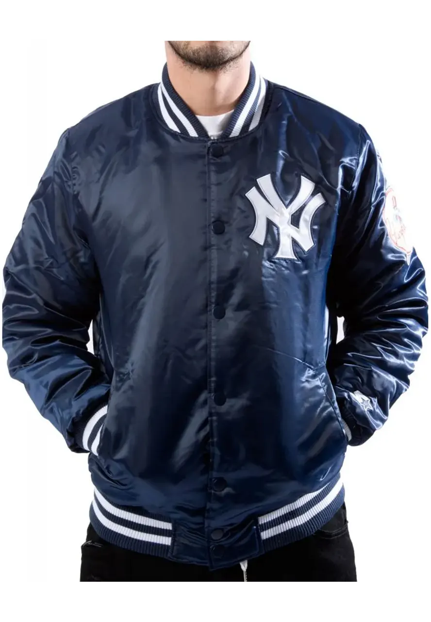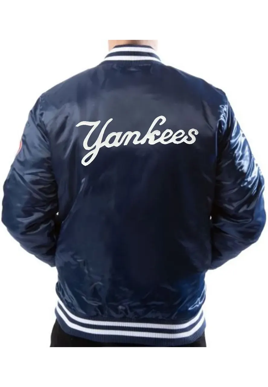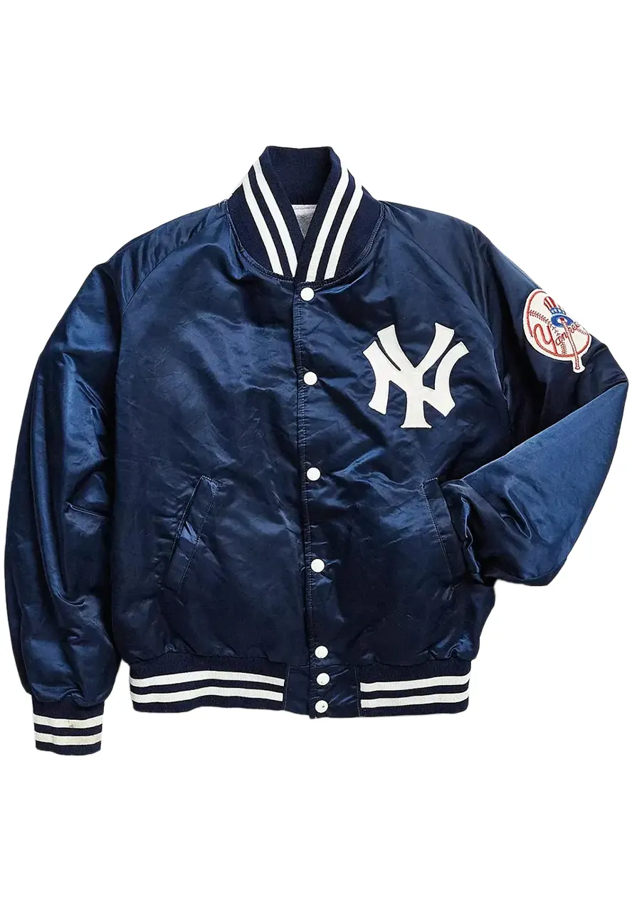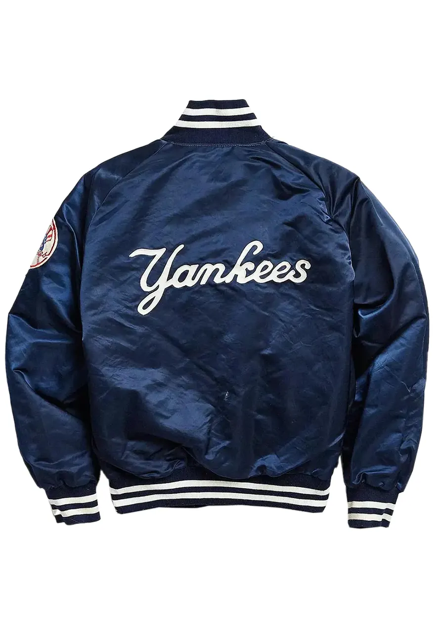 Bring retro energy to your wardrobe with this ’90s Full-Snap New York Yankees Satin Jacket. Designed in a bold mix of blue, gold, and white, it pays tribute to classic Yankees style with a nostalgic edge. The glossy satin exterior gives it that unmistakable throwback shine, while the soft viscose lining ensures comfort throughout the day.