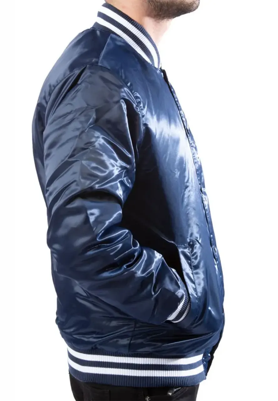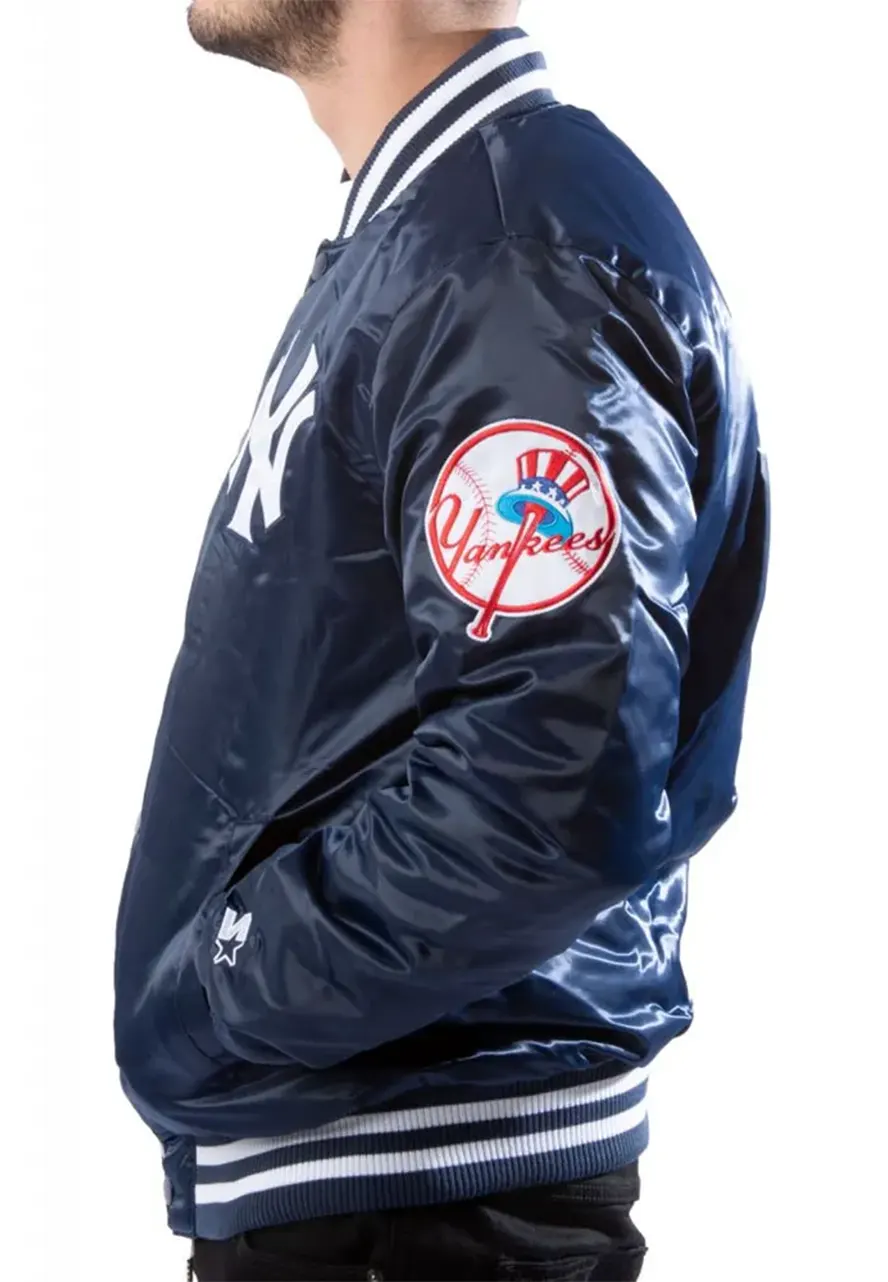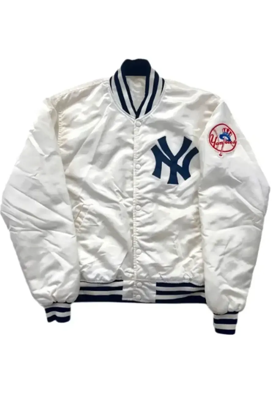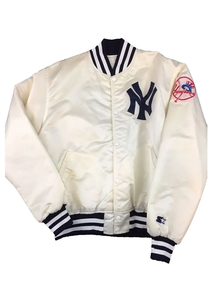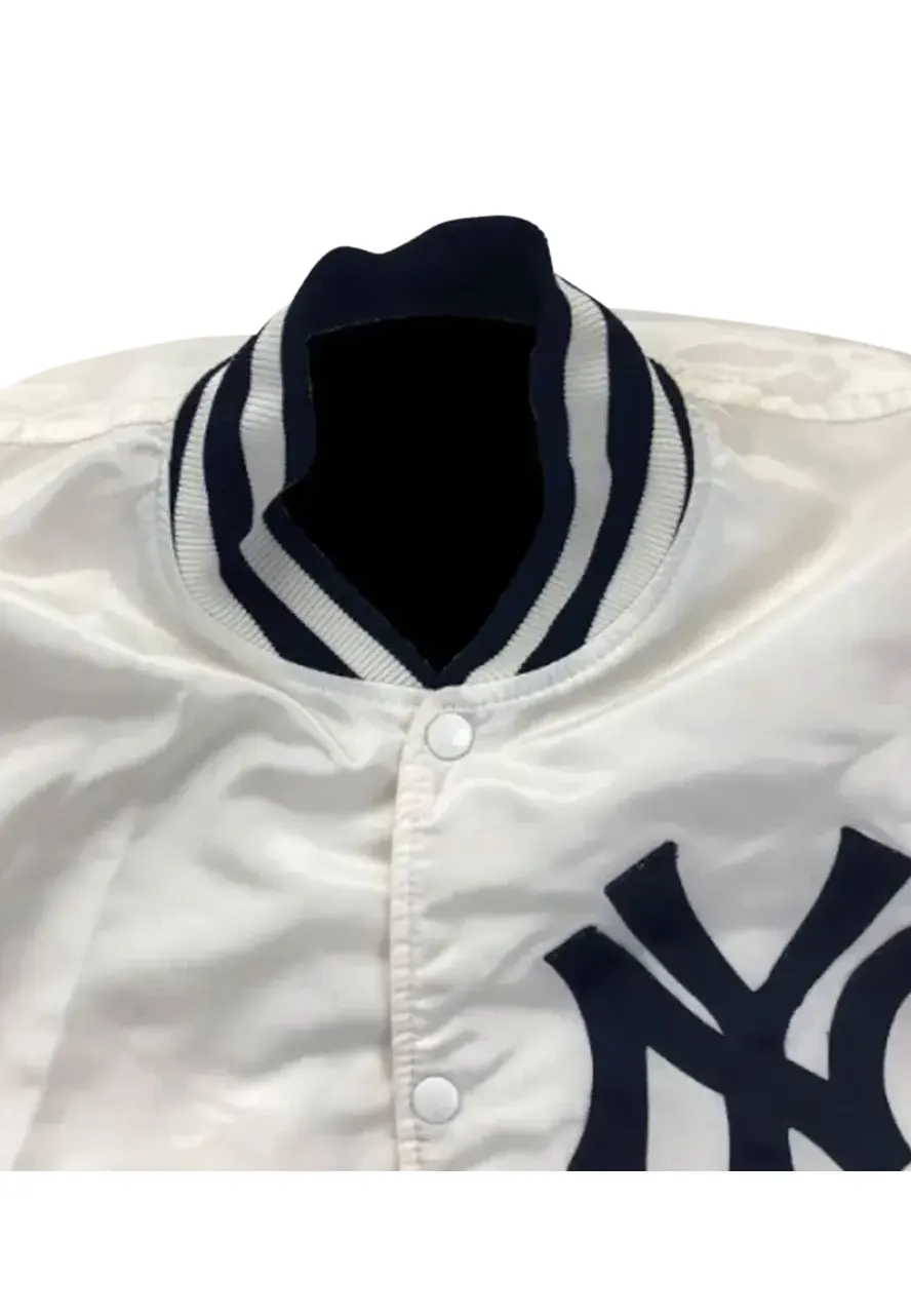 Bring retro energy to your wardrobe with this ’90s Full-Snap New York Yankees Satin Jacket. Designed in a bold mix of blue, gold, and white, it pays tribute to classic Yankees style with a nostalgic edge. The glossy satin exterior gives it that unmistakable throwback shine, while the soft viscose lining ensures comfort throughout the day.