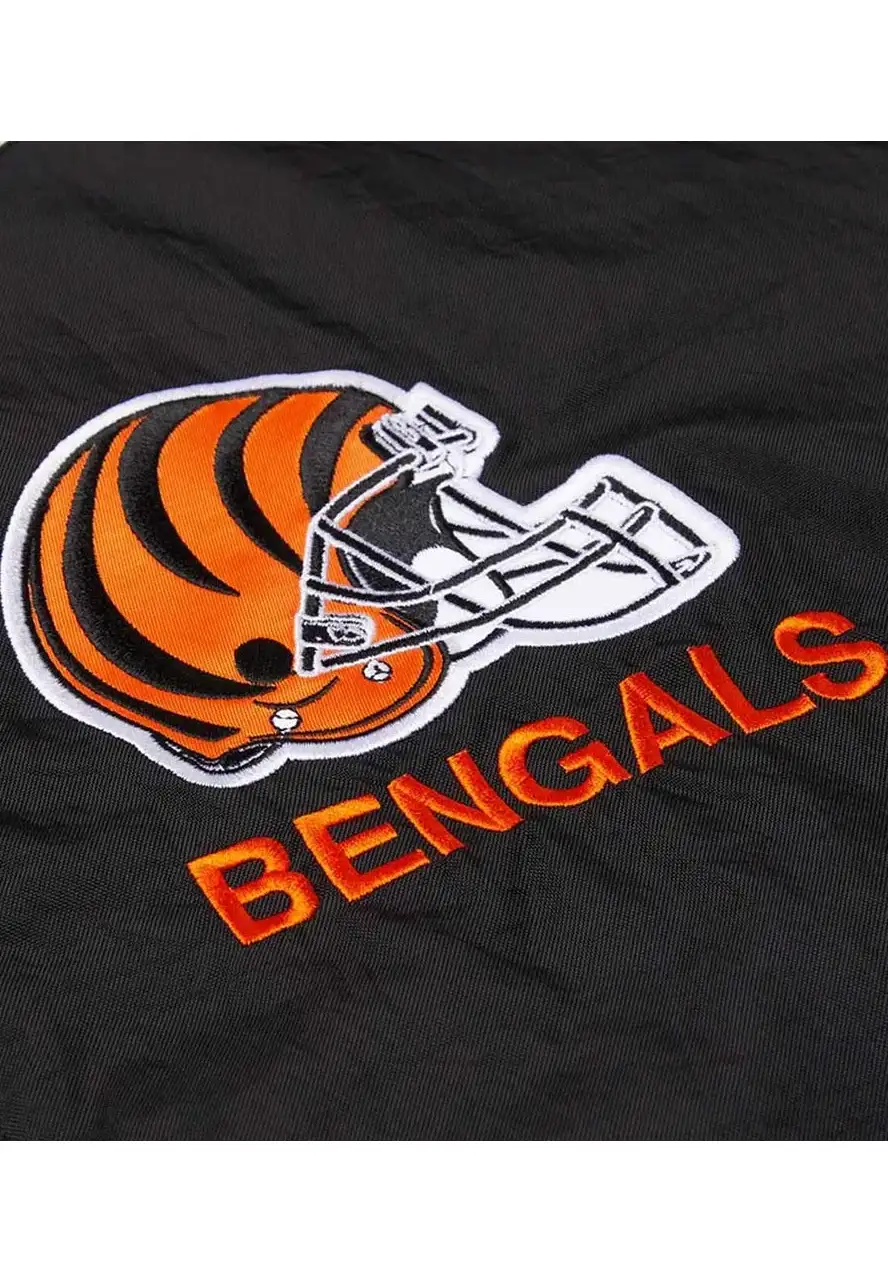 Stay protected from the wind and rep your team in style with the Full Zip Cincinnati Bengals Windbreaker Jacket. Crafted from lightweight nylon, this bengals windbreaker jacket features a sleek black and orange color combination that proudly reflects Bengals spirit. The stand collar and full zip front offer a clean, modern look, while the elastic cuffs and hemline ensure a secure fit in windy conditions.