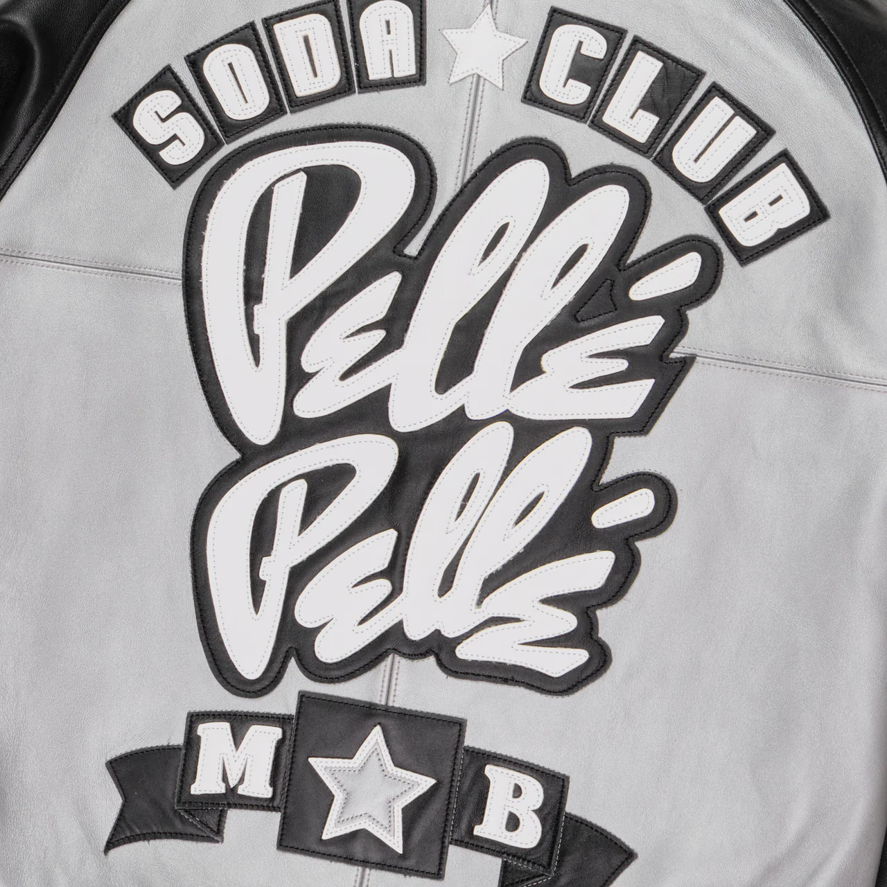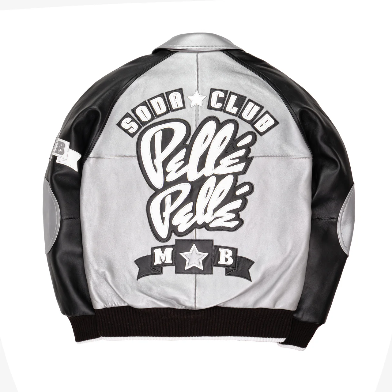 - 2 Ply Oversized “Soda Club Pelle Pelle” Leather Applique On The Back Of The Jacket
