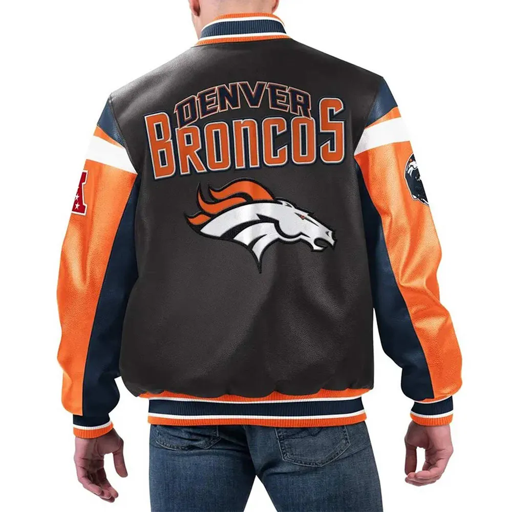 Denver Broncos Full Zip Black Leather Varsity Jacket