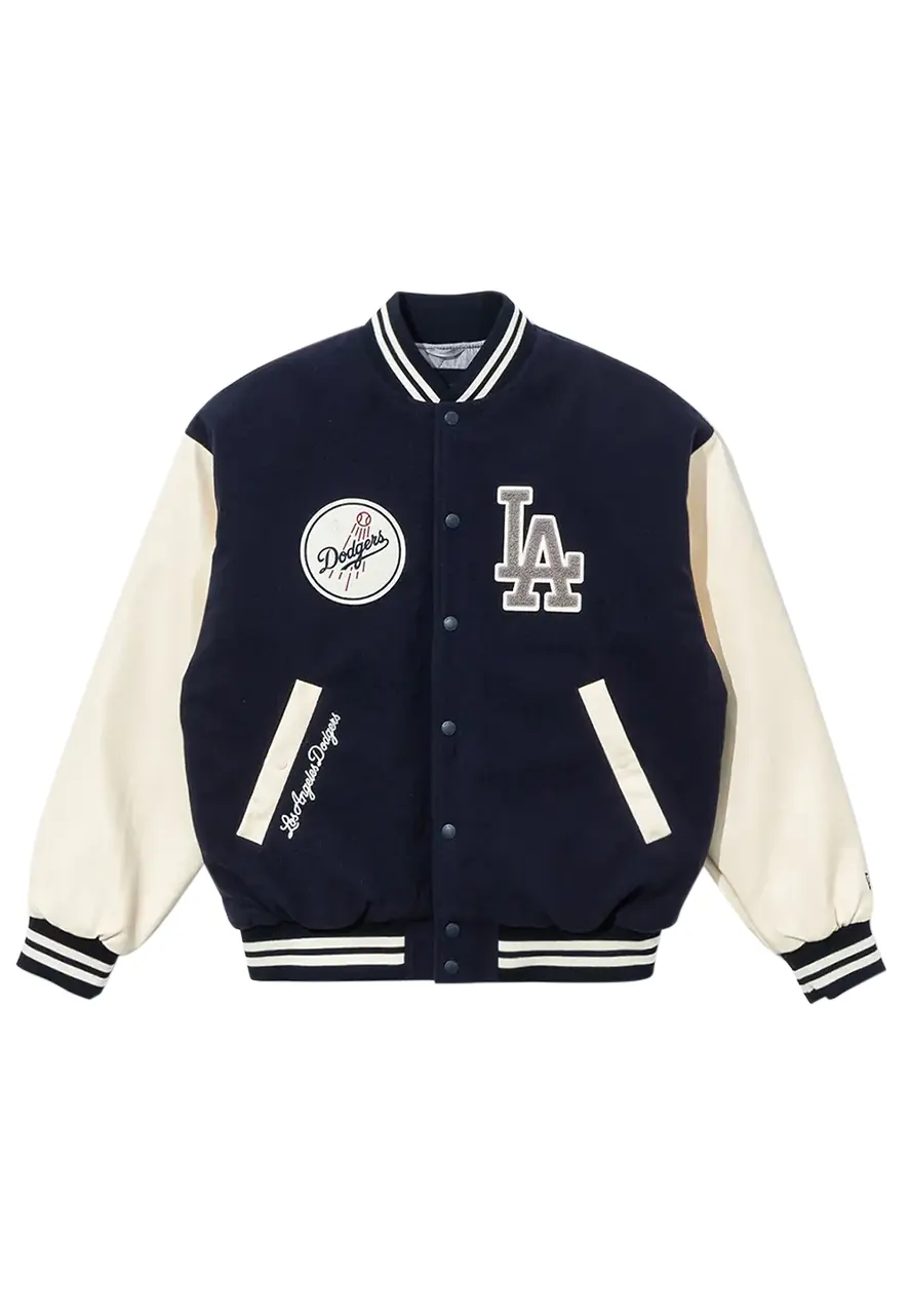 Show off timeless team pride with the Los Angeles Dodgers Black Baseball Jacket, blending classic varsity style with premium materials. Crafted from a combination of durable wool and sleek leather sleeves, this jacket delivers warmth, comfort, and standout style.