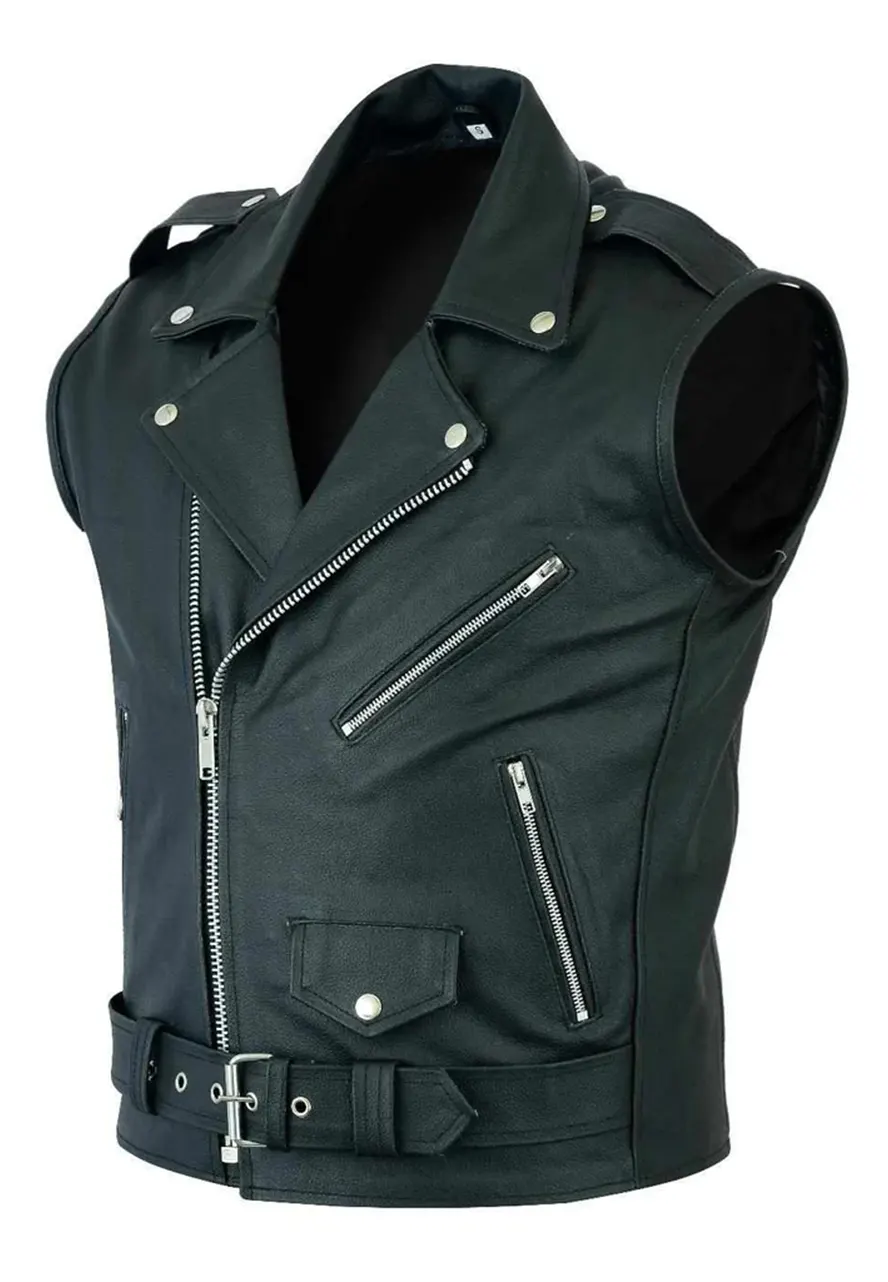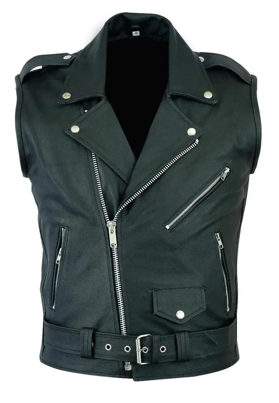 Men’s Brando Vintage Black Faux Leather Biker Vest