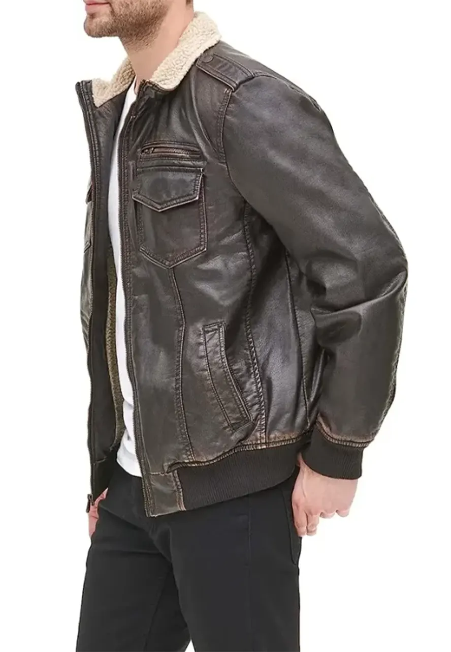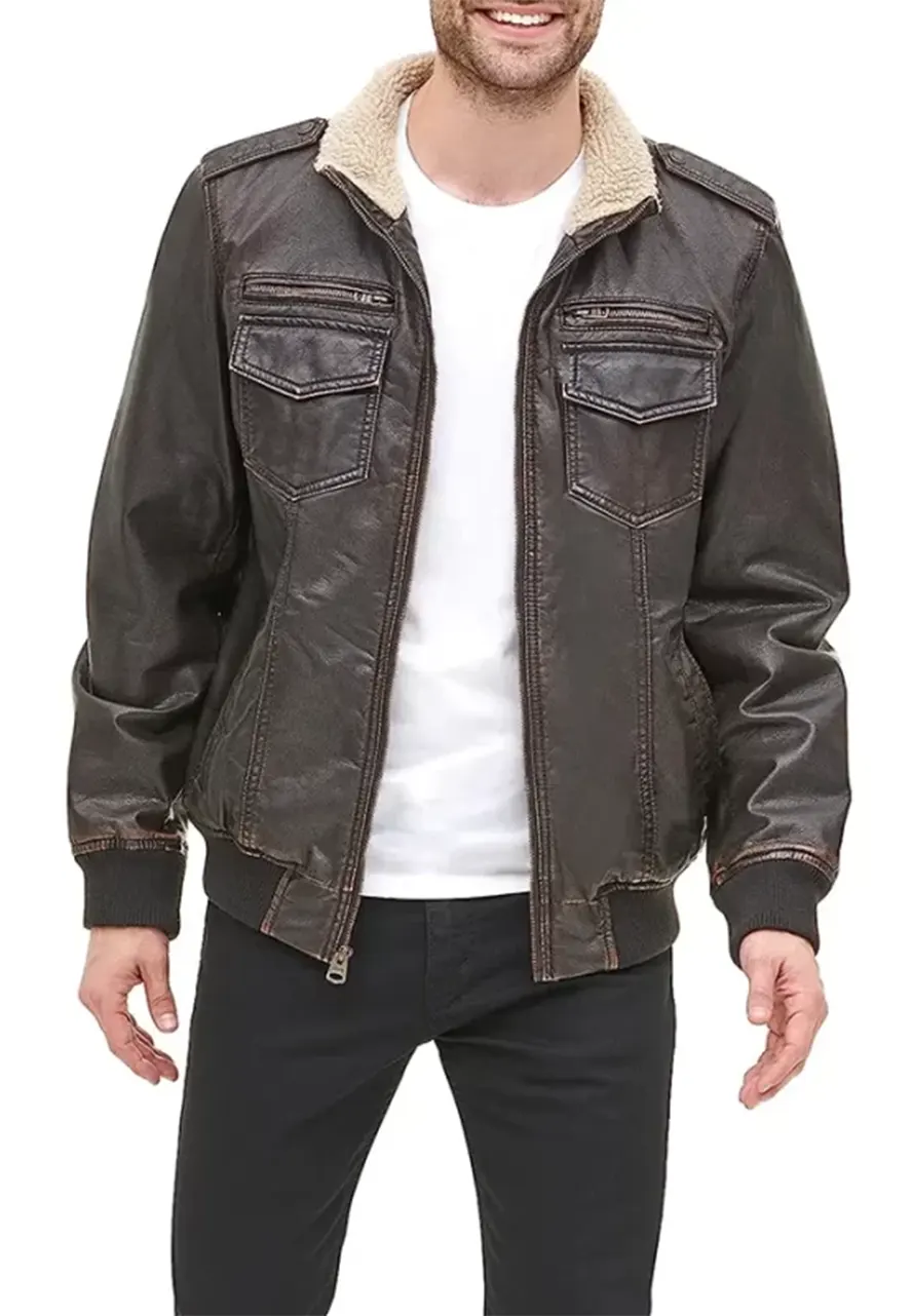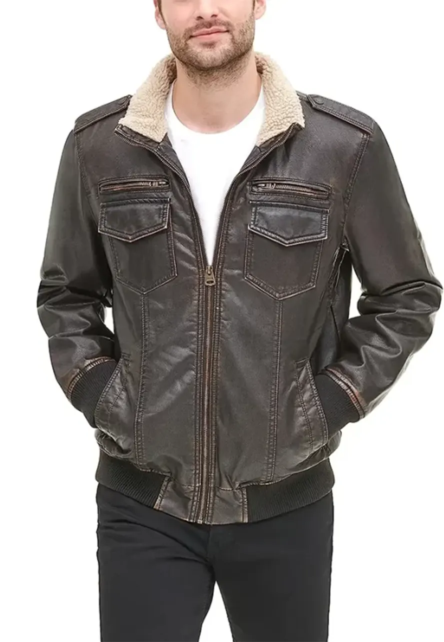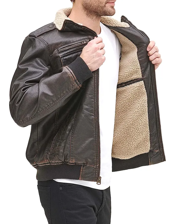 This aviator jacket sherpa design takes concepts from classic pilot jackets while providing a contemporary contact. The sherpa lining adds greater warmth, even as the faux leather exterior keeps the jacket looking polished. Whether you are going for a vintage aesthetic or simply want a reliable dark brown sherpa jacket mens, this piece is an awesome addition to any dresser.