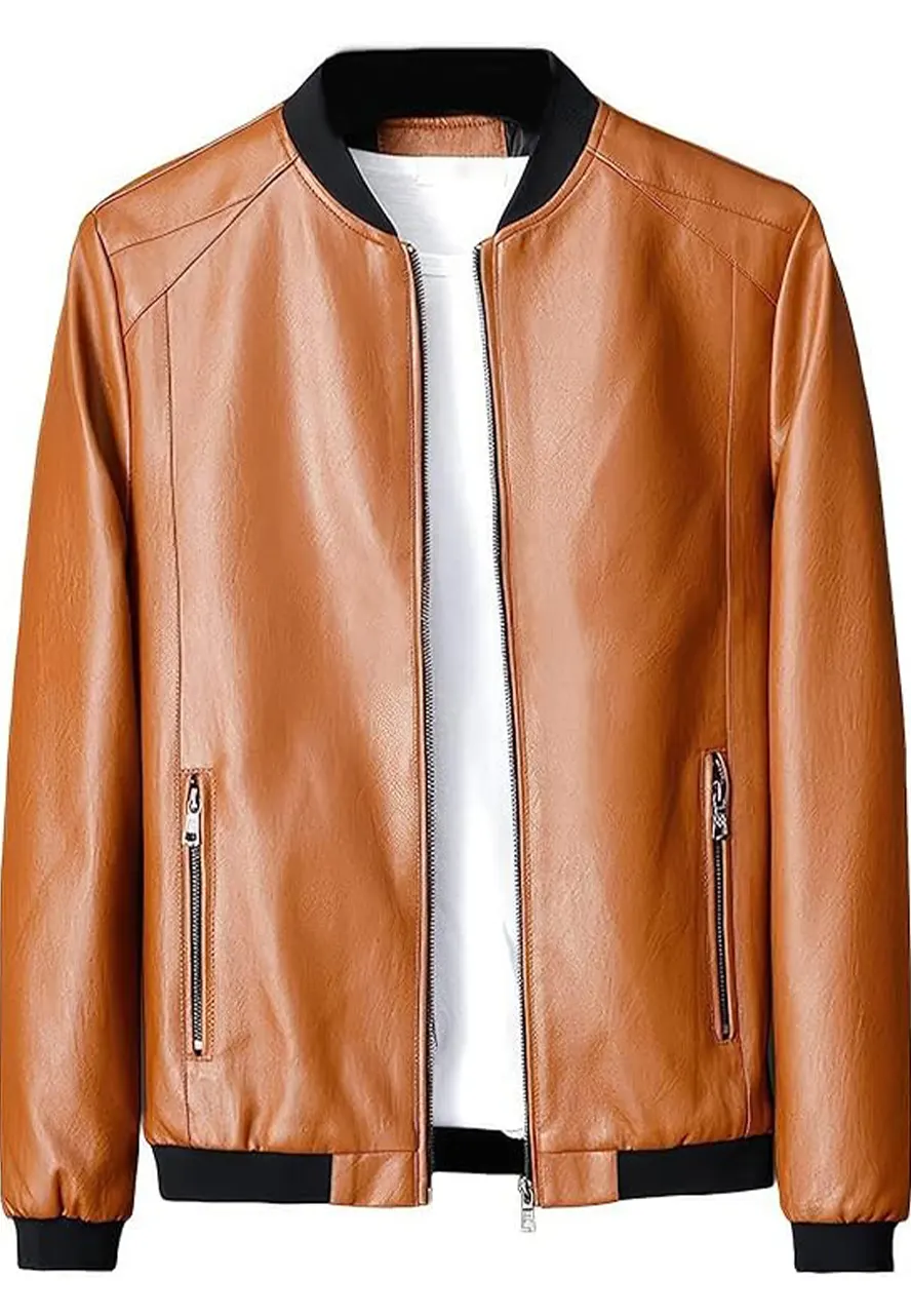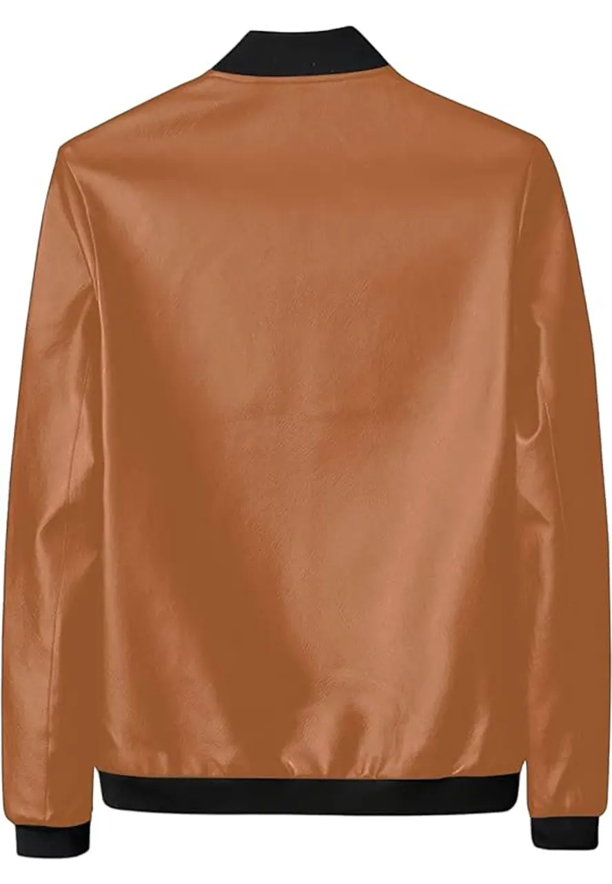 Men’s Faux Leather Tan Brown Bomber Jacket