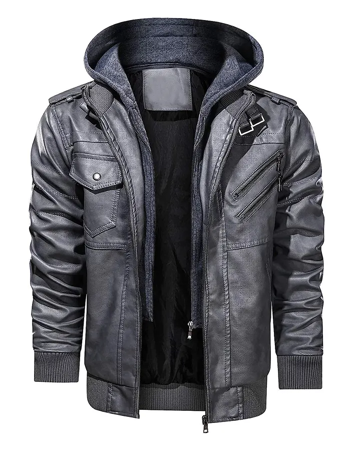 A grey hooded jacket is a need-to-have for individuals who want each consolation and fashion in one versatile piece. This grey leather jacket with hood is crafted with faux leather, offering a swish and modern-day look. It capabilities a stand collar with a detachable hood, supplying you with the choice to adjust your look and guard yourself from the factors. The gentle polyester lining inside ensures a comfortable sense, making it appropriate for informal outings or less warm days.