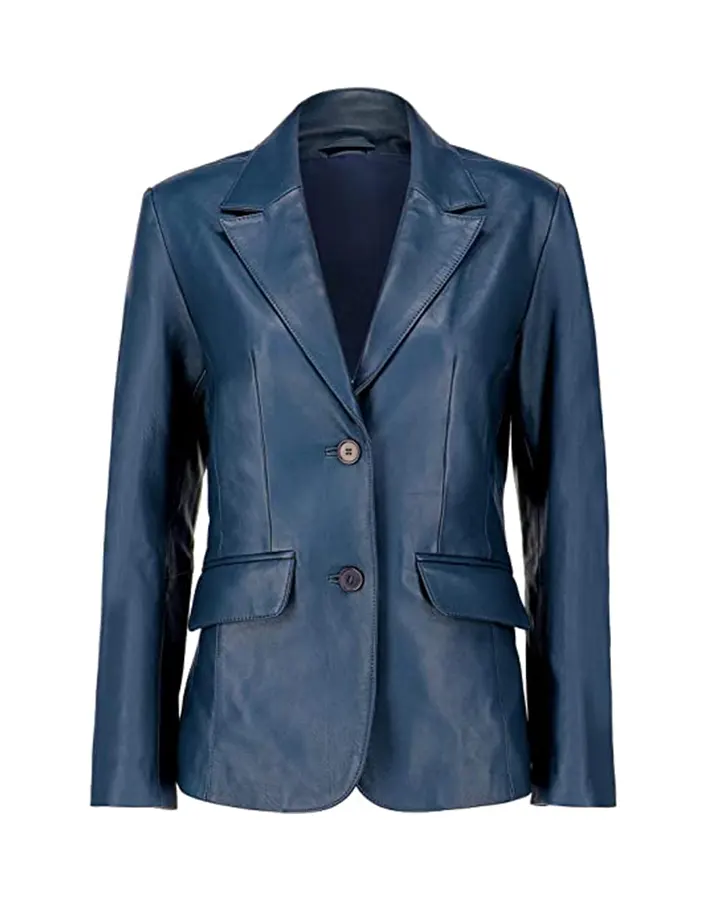 Men’s Navy Blue Faux Leather Sports Blazer