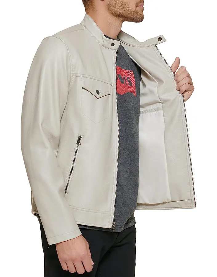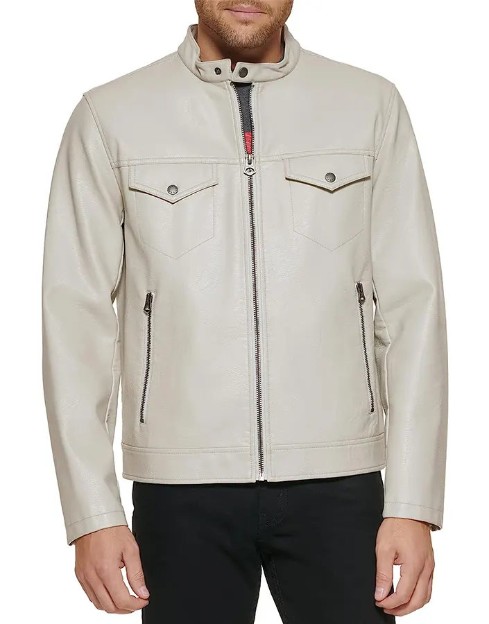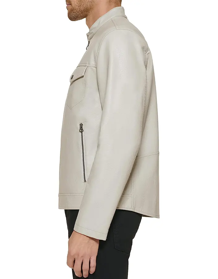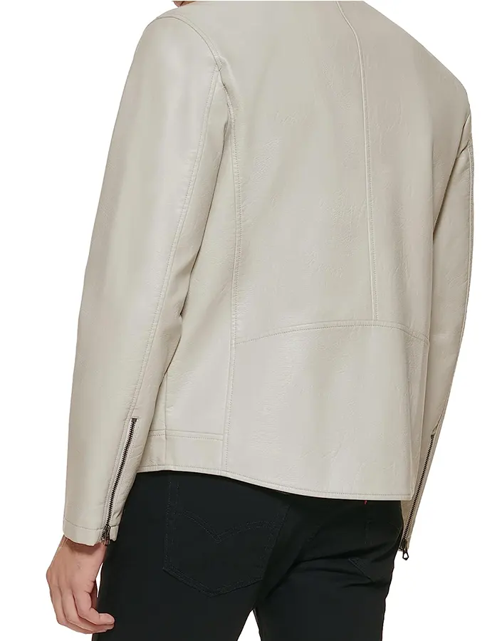 Stand out with the mens leather trucker jacket, an irresistibly modern take on a timeless classic. Boasting its distinctive oyster hue and is made from high-quality faux leather for maximum durability while remaining cruelty-free; featuring a structured fit front zipper closure and chest pockets; perfect for layering for casual days as well as nighttime events! It will surely elevate any ensemble in any situation and is an essential addition to your wardrobe.