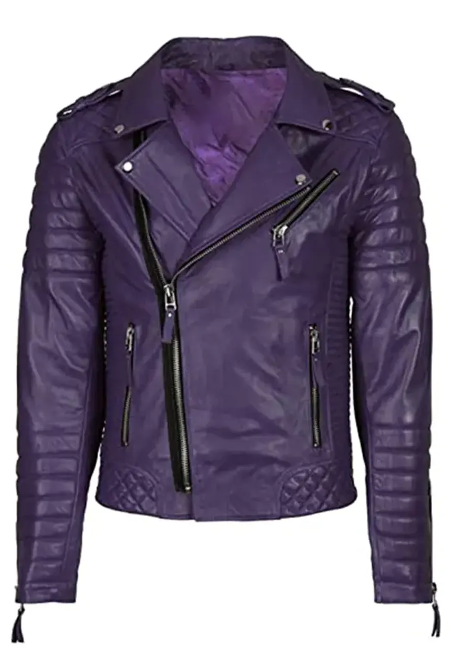 This mens purple biker jacket goes beyond looks its construction boasts high-quality stitching to ensure long-term use and is lightweight yet strong, providing comfort during every wear. Be it riding or just out and about for casual reasons, the purple leather biker jacket provides the ideal combination of style and functionality.