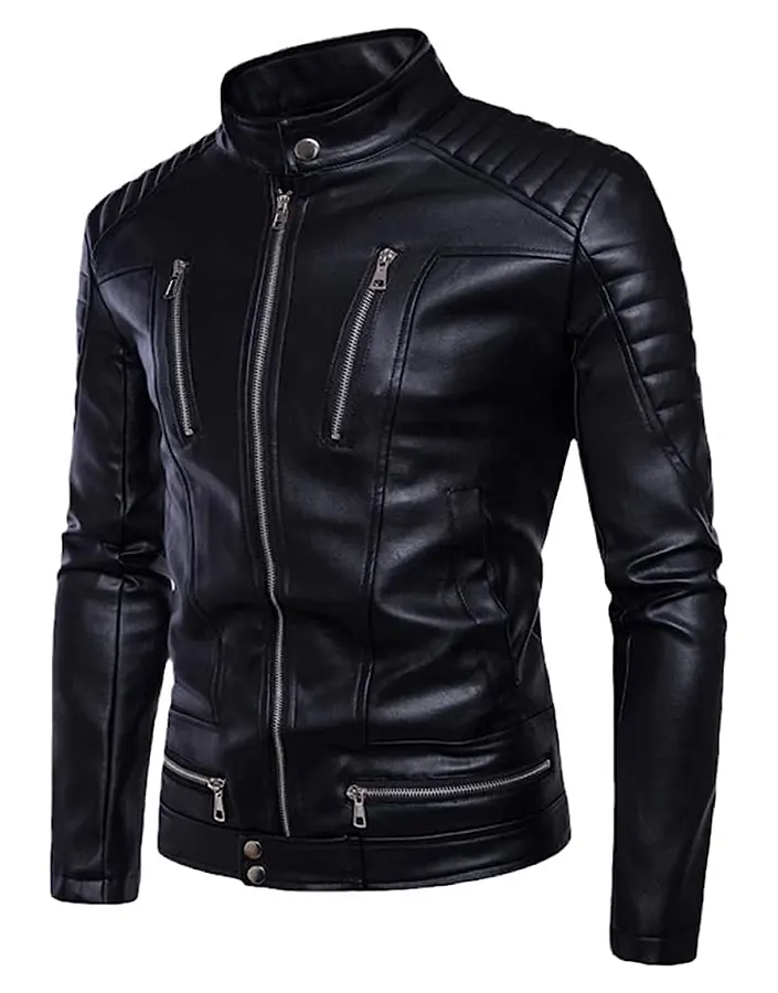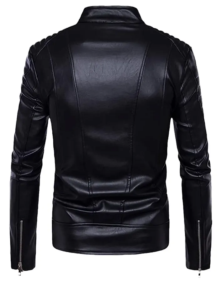 Men’s Slim Fit Black Faux Leather Biker Jacket