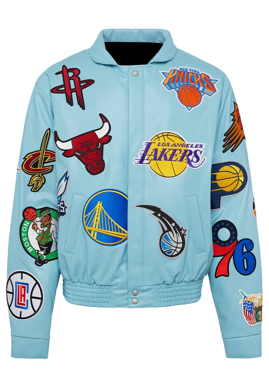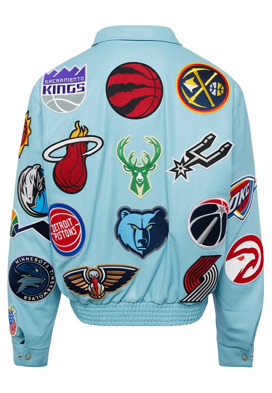 NBA Collage Light Blue Leather Jacket
