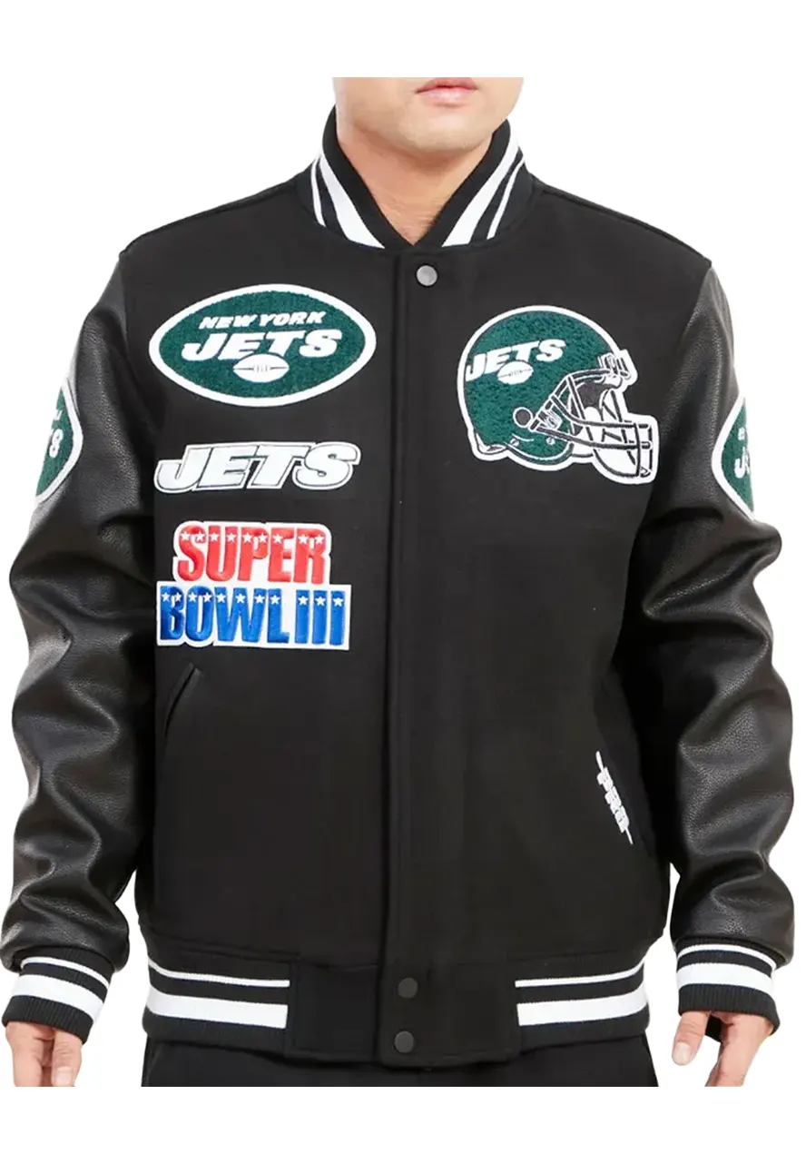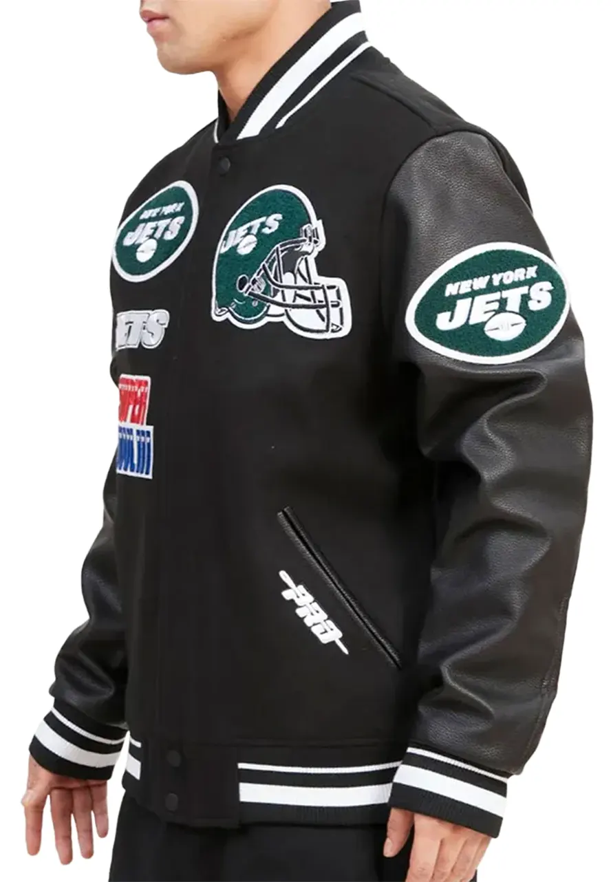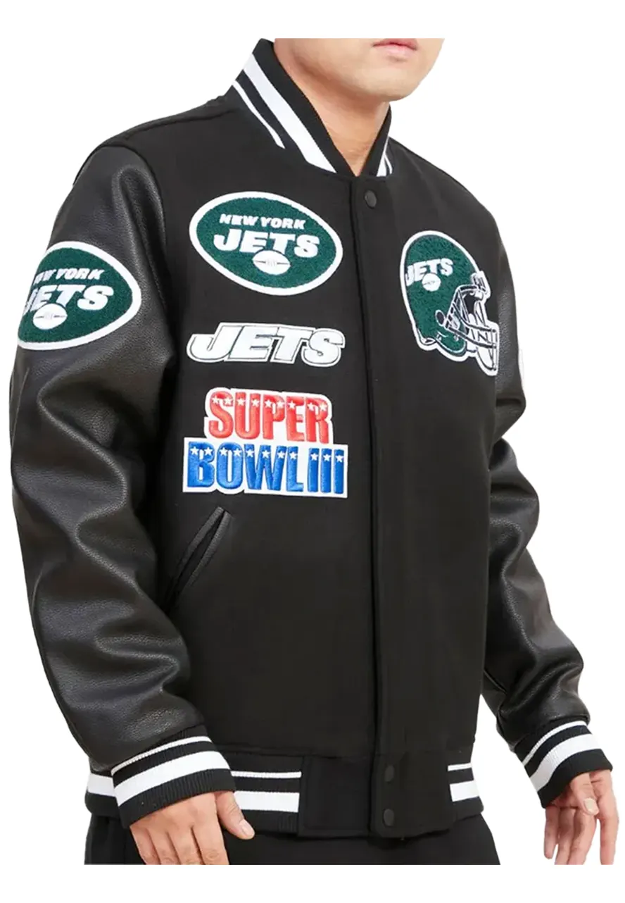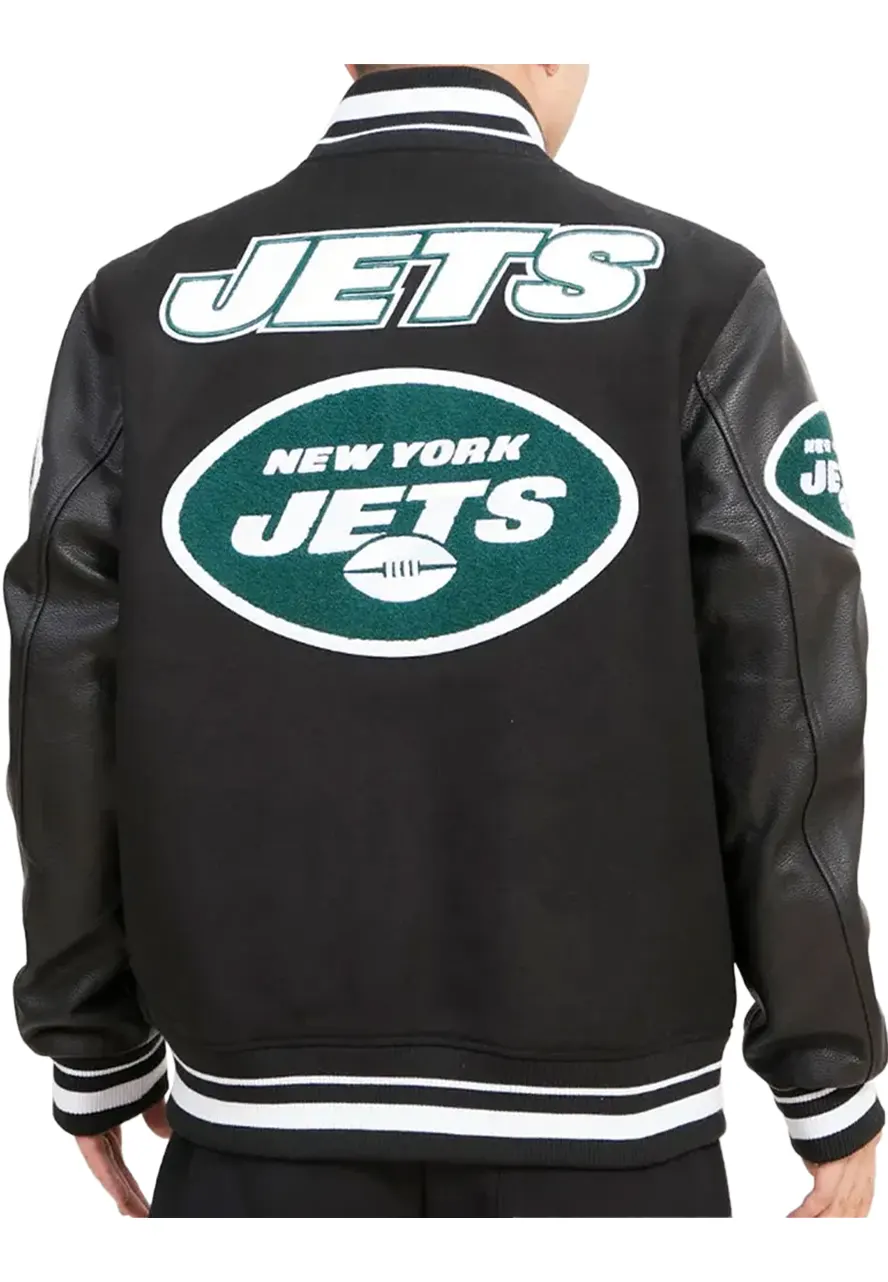 New York Jets Mashup Wool and Leather Black Varsity Jacket