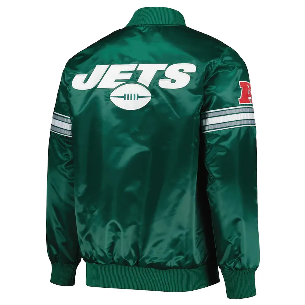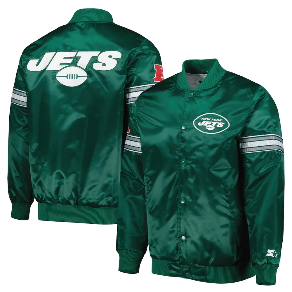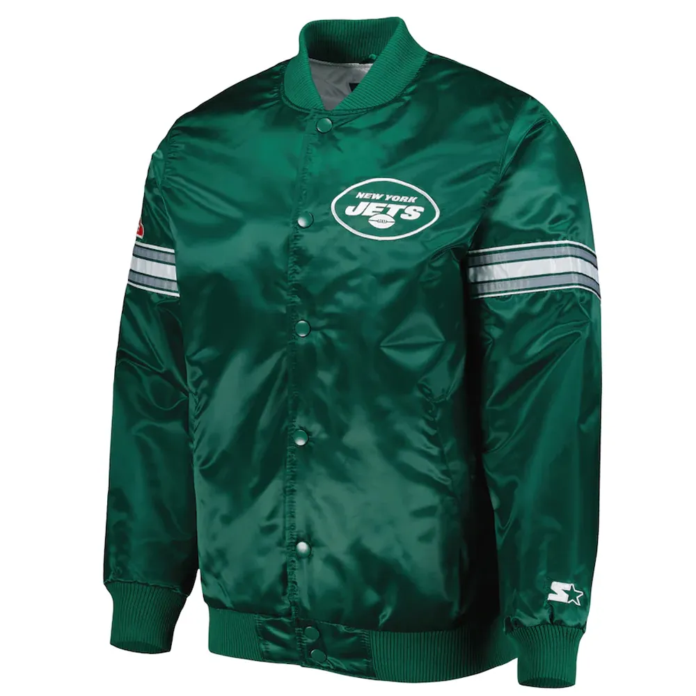 Starter NY Jets Full Snap Satin Green Bomber Jacket