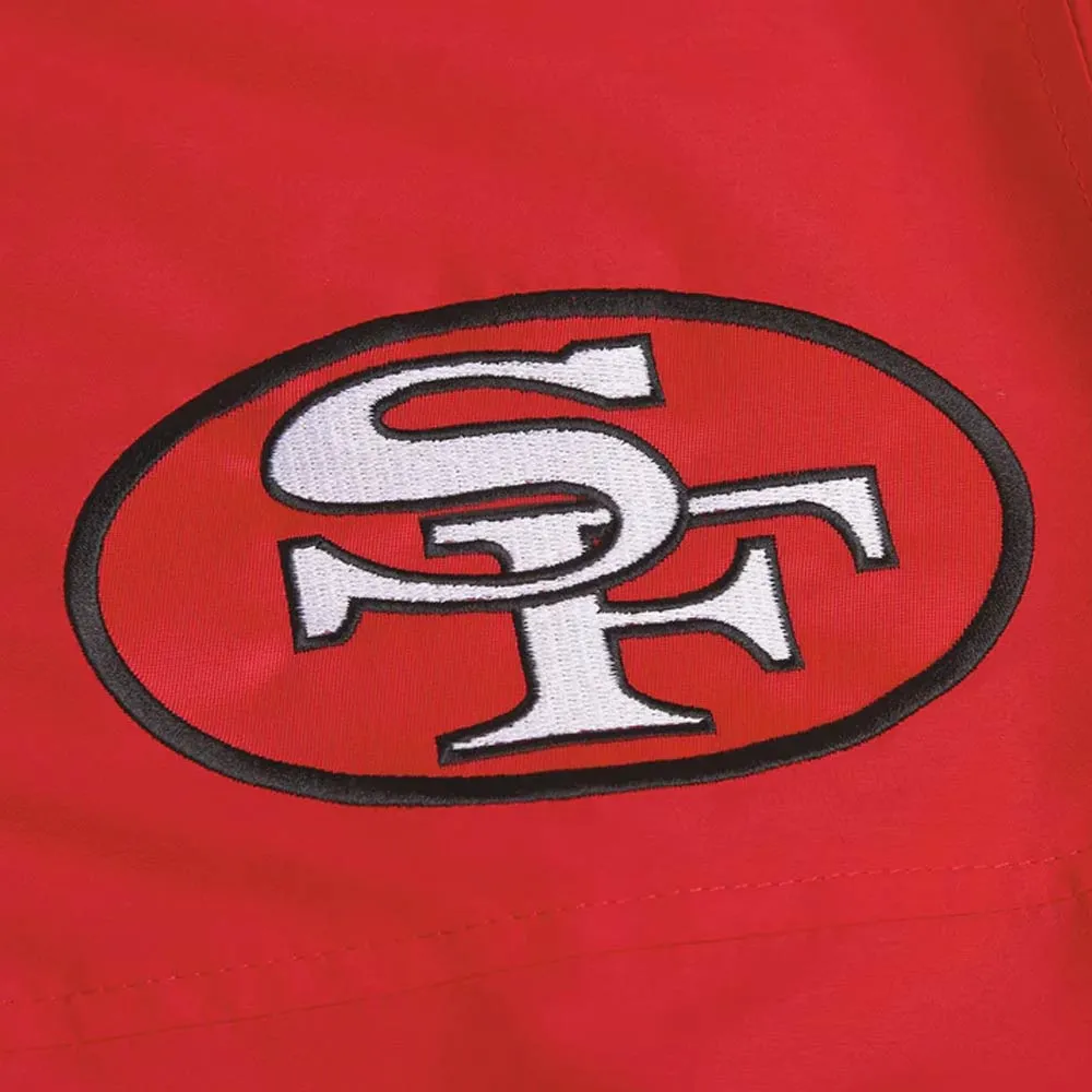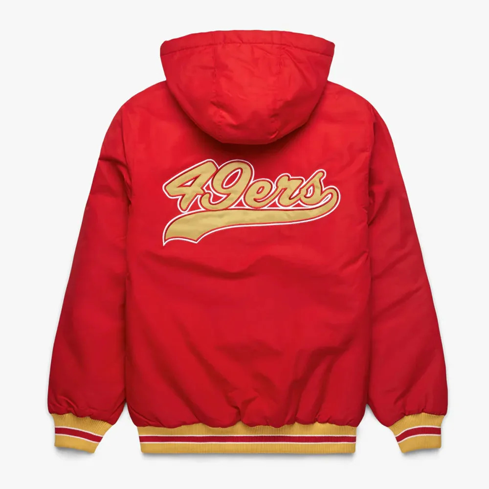 It has two waist and two inside pockets so you can carry all of your carry-on items when you are on the go in this San Francisco 49ers Red Hooded Jacket. The bold San Francisco 49ers logo on the chest and wordmark on the back look just like what the players wear on the field.