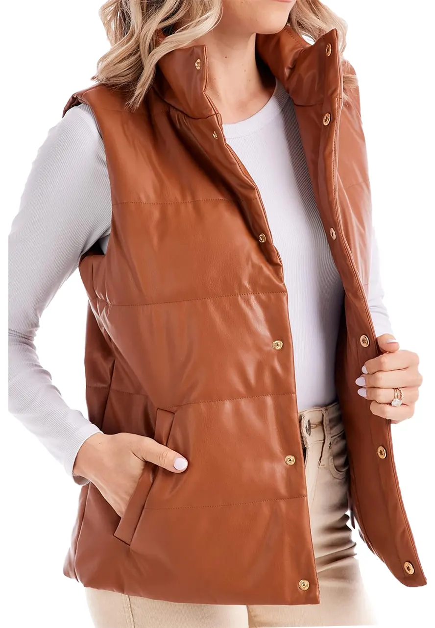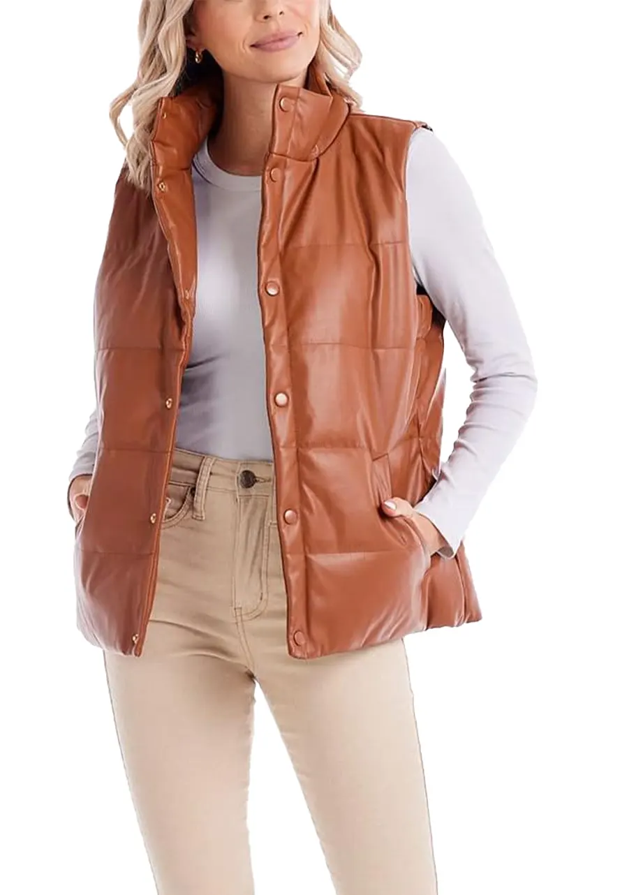 Women’s Boyd Brown Faux Leather Puffer Vest