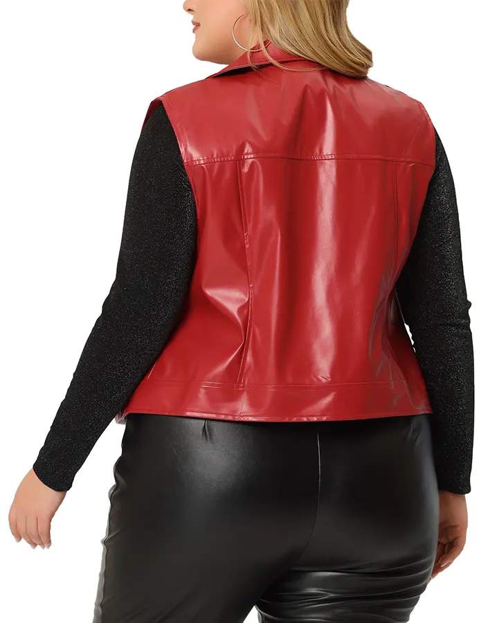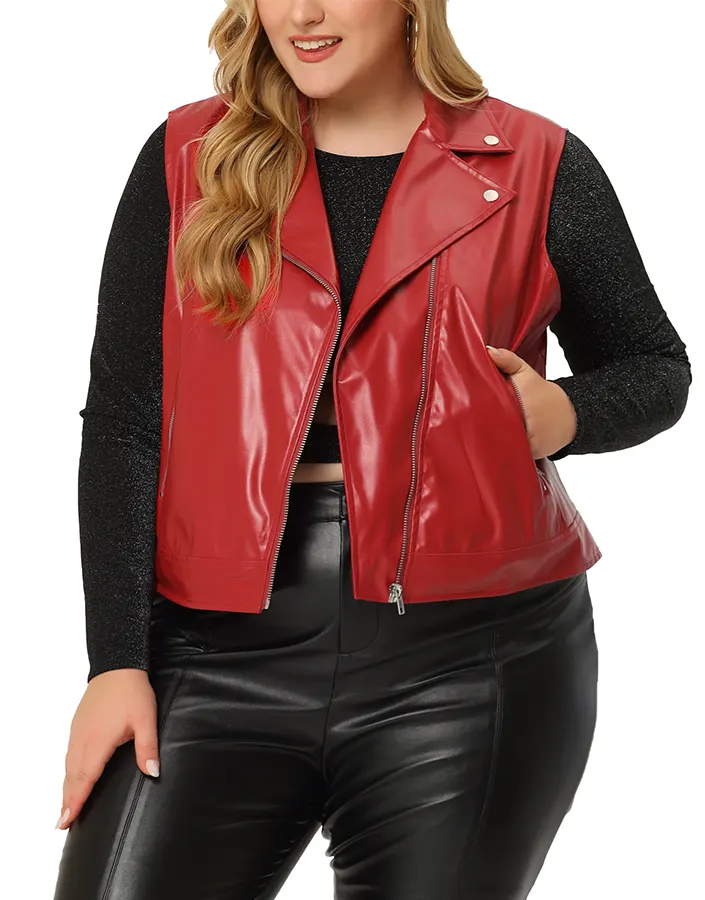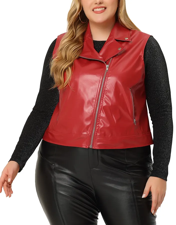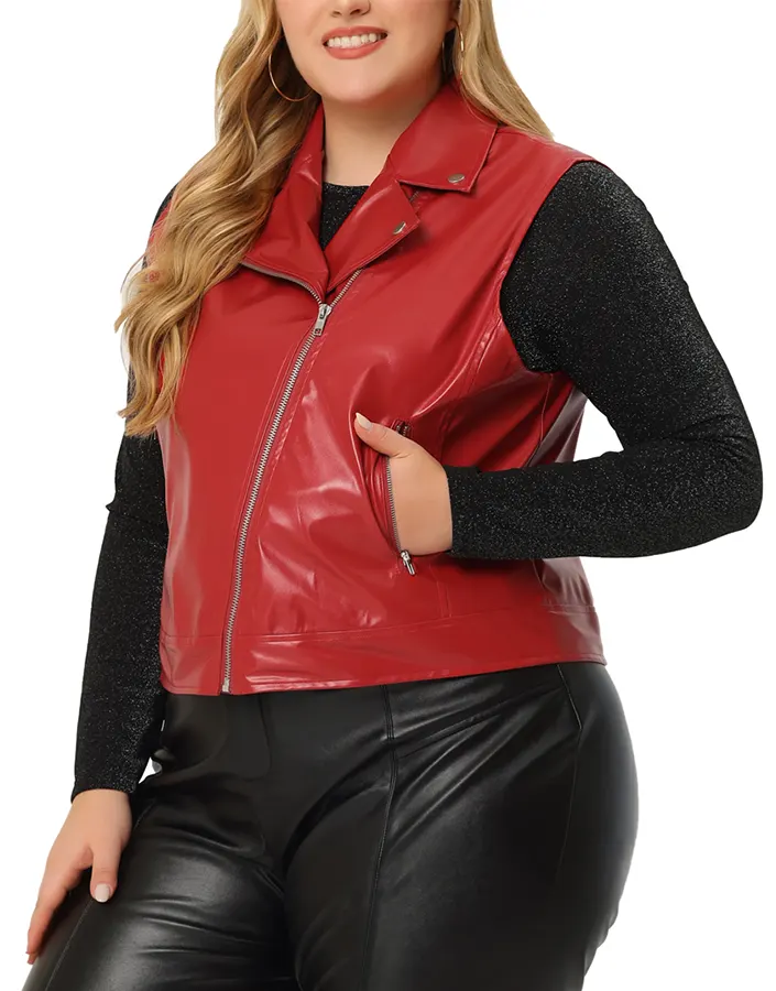 This classic red faux leather biker vest for women features mid-heel heels in elegant red that make this dress both sexy and comfortable for parties or work settings alike. Additionally, its zipper pockets, turn-down collar, zipper front closure, and zip-up sleeves complement solid colors perfectly to complete this timeless piece of attire.