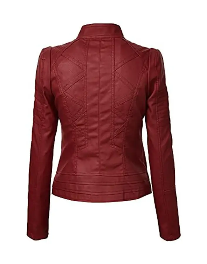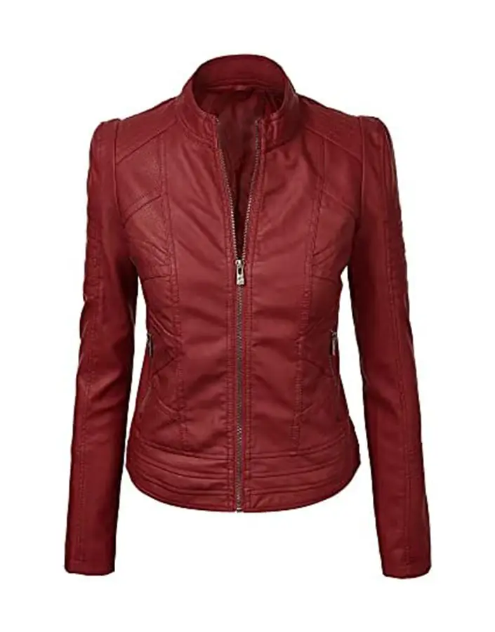 Enhance your style with the maroon jacket womens – an exceptional blend of sophistication and edge! Boasting an ultra-slim fitting silhouette designed to contour to your body shape for an eye-catching style, its rich maroon hue adds depth and elegance while its front zip closure and convenient pockets ensure functionality without compromising style – ideal for both night out or day-to-day wear this faux leather piece brings a polished touch to every ensemble.