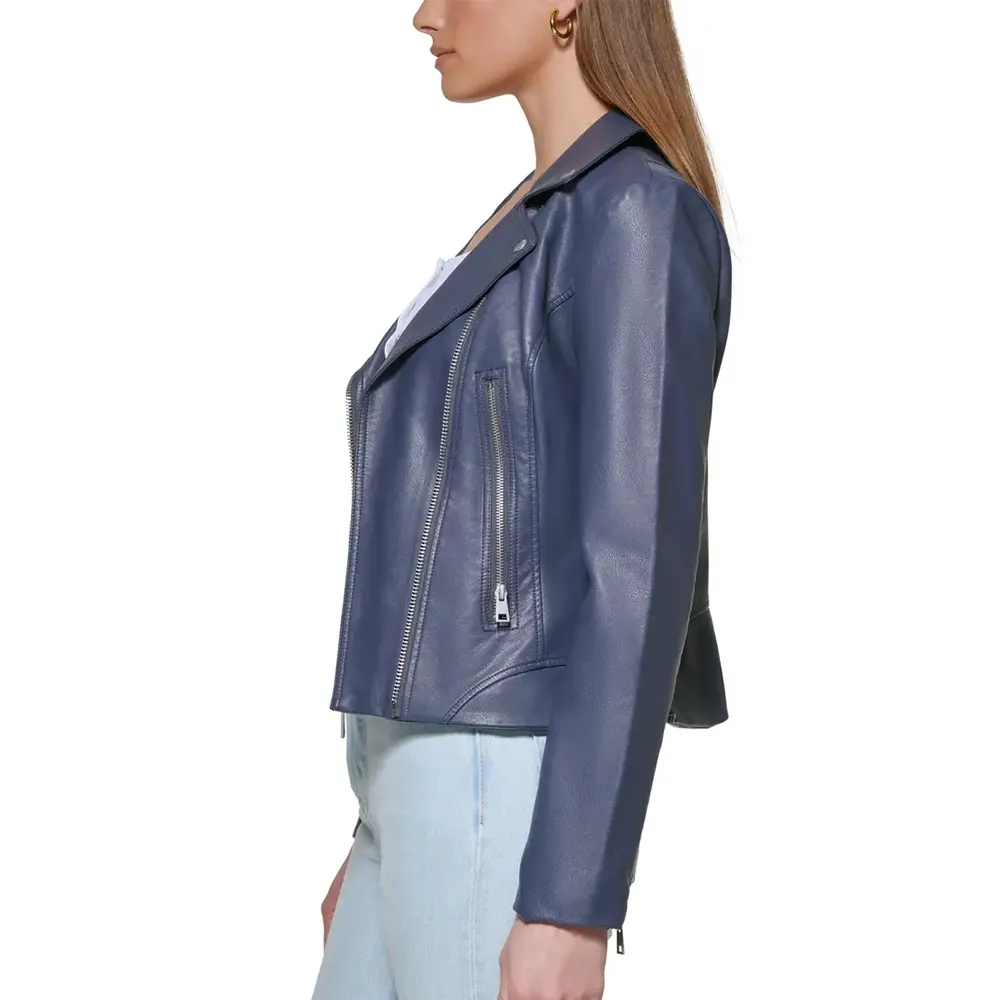 Women’s Pacific Dark Navy Blue Faux Leather Moto Jacket