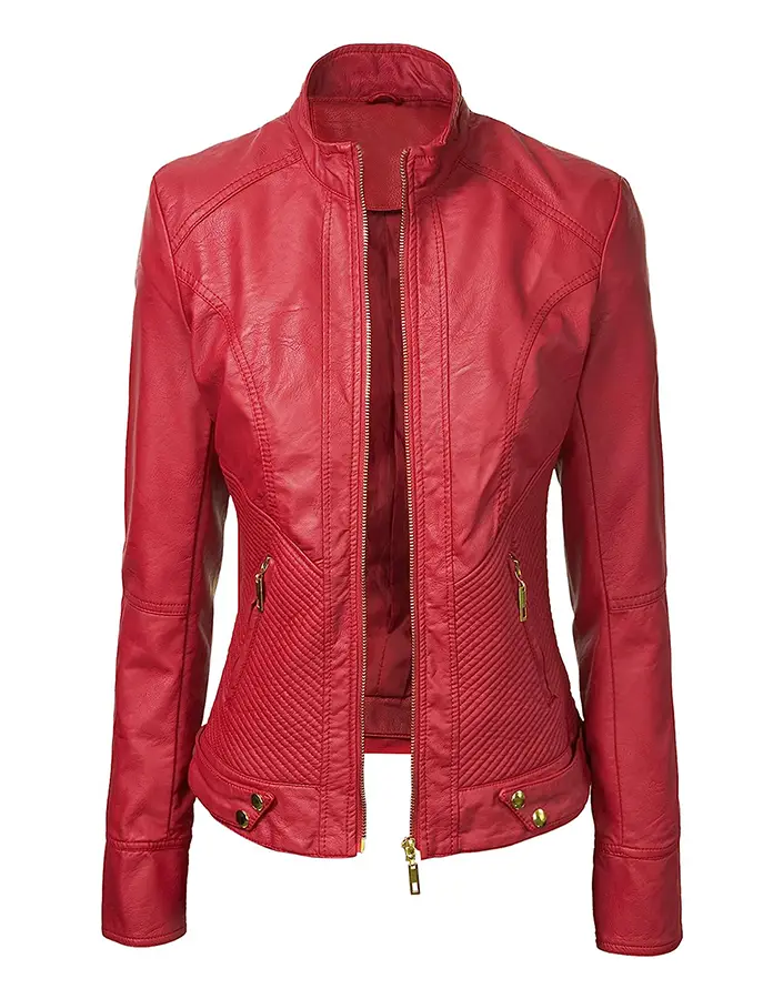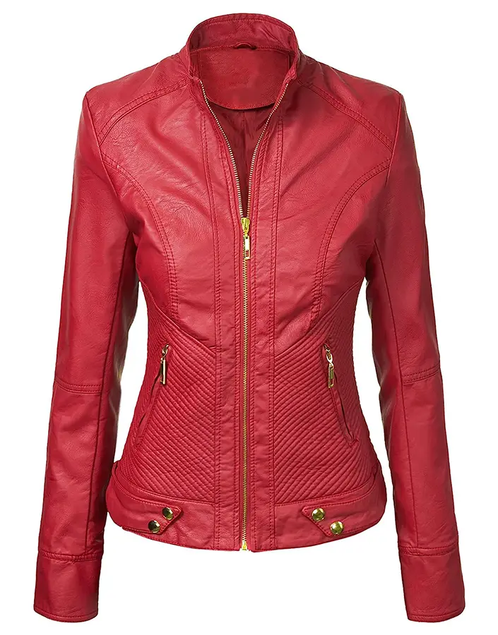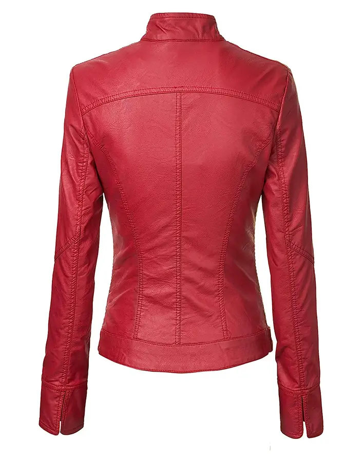 Women’s Red Faux Leather Slim Fit Jacket